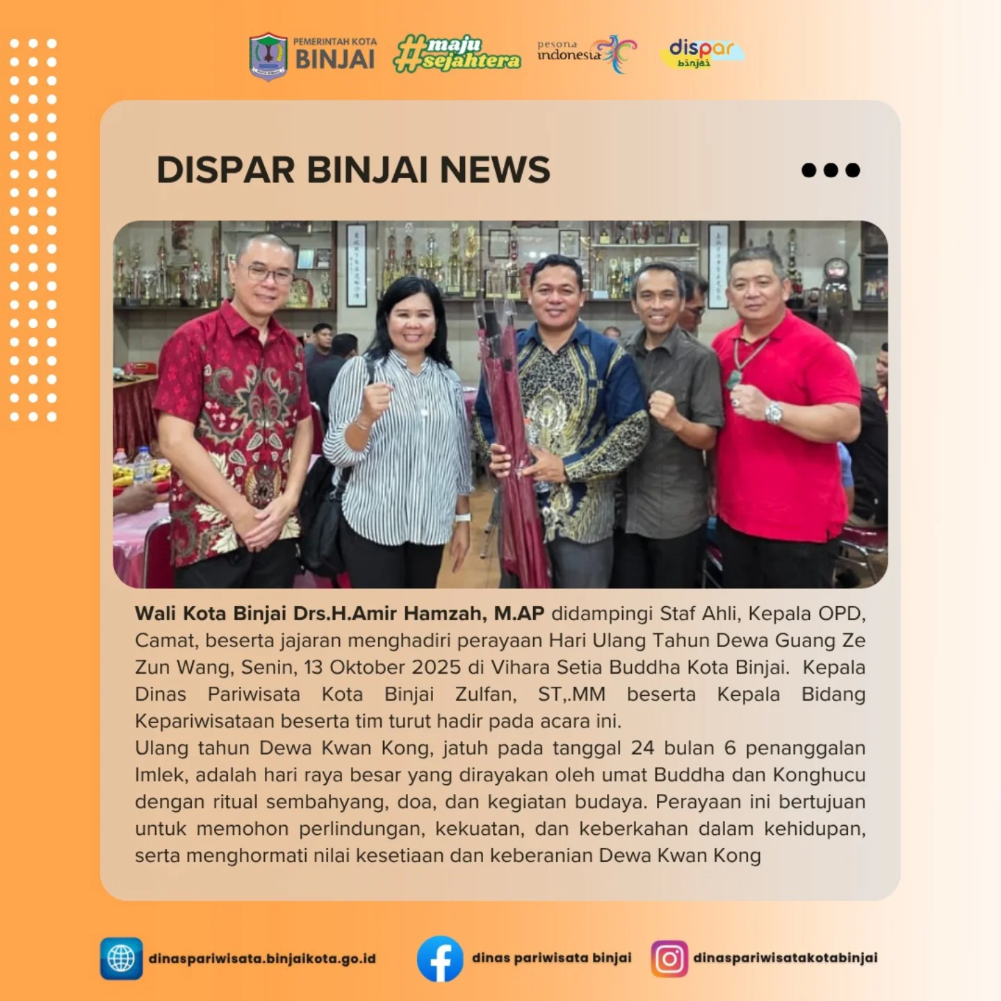 Wali Kota Binjai Drs.H.Amir Hamzah, M.AP didampingi Staf Ahli, Kepala OPD, Camat, beserta jajaran menghadiri perayaan Hari Ulang Tahun Dewa Guang Ze Zun Wang, Senin, 13 Oktober 2025 di Vihara Setia Buddha Kota Binjai.