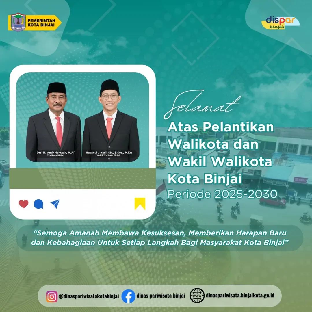 Selamat dan Sukses atas dilantiknya Drs.H.Amir Hamzah, MAP & Hasanul Jihadi S.Sos, SH, Mkn sebagai Wali Kota dan Wakil Walikota Binjai periode 2025-2030.